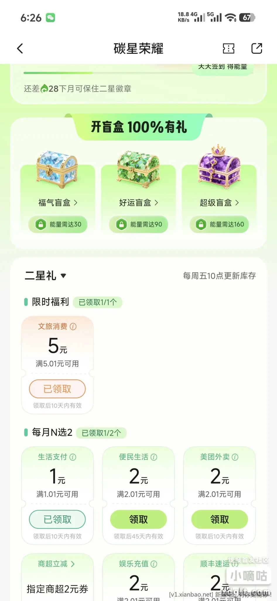 - 交行碳星荣耀有限时券5元