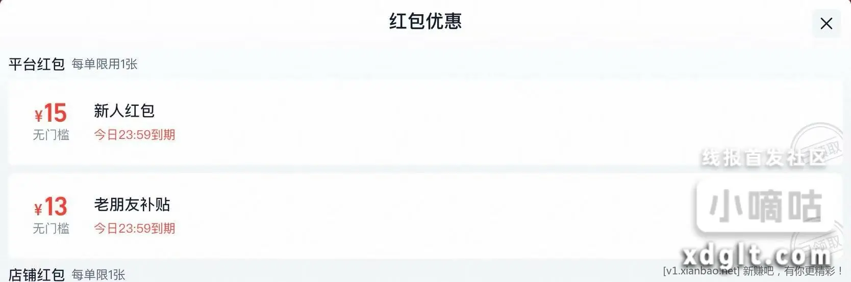 用微信小号过一下淘宝闪购的小程序 给了好几张无门槛优惠券