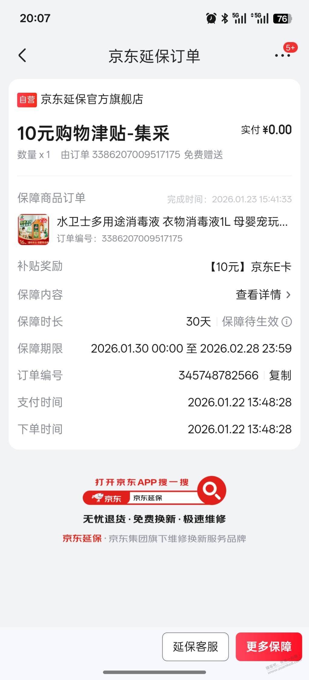 上次京东抽奖买了水卫士多用途消毒液的吧友注意,好像有10元e卡拿