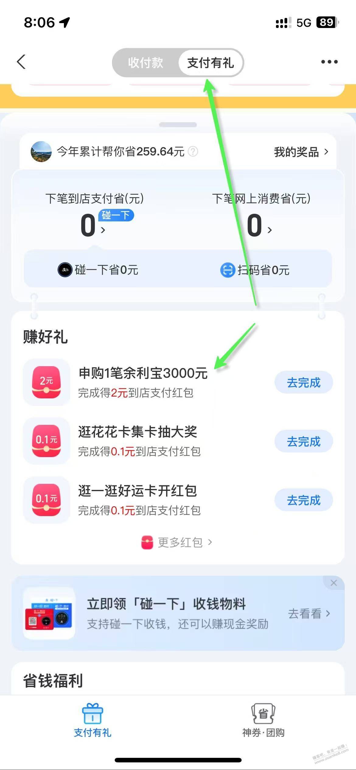 如图,zfb支付,有任务的转进去3000,然后返回领2元