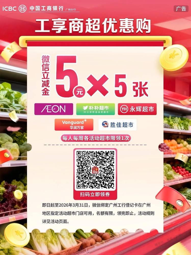 广州工行微信立减金|“工”享商超优惠购