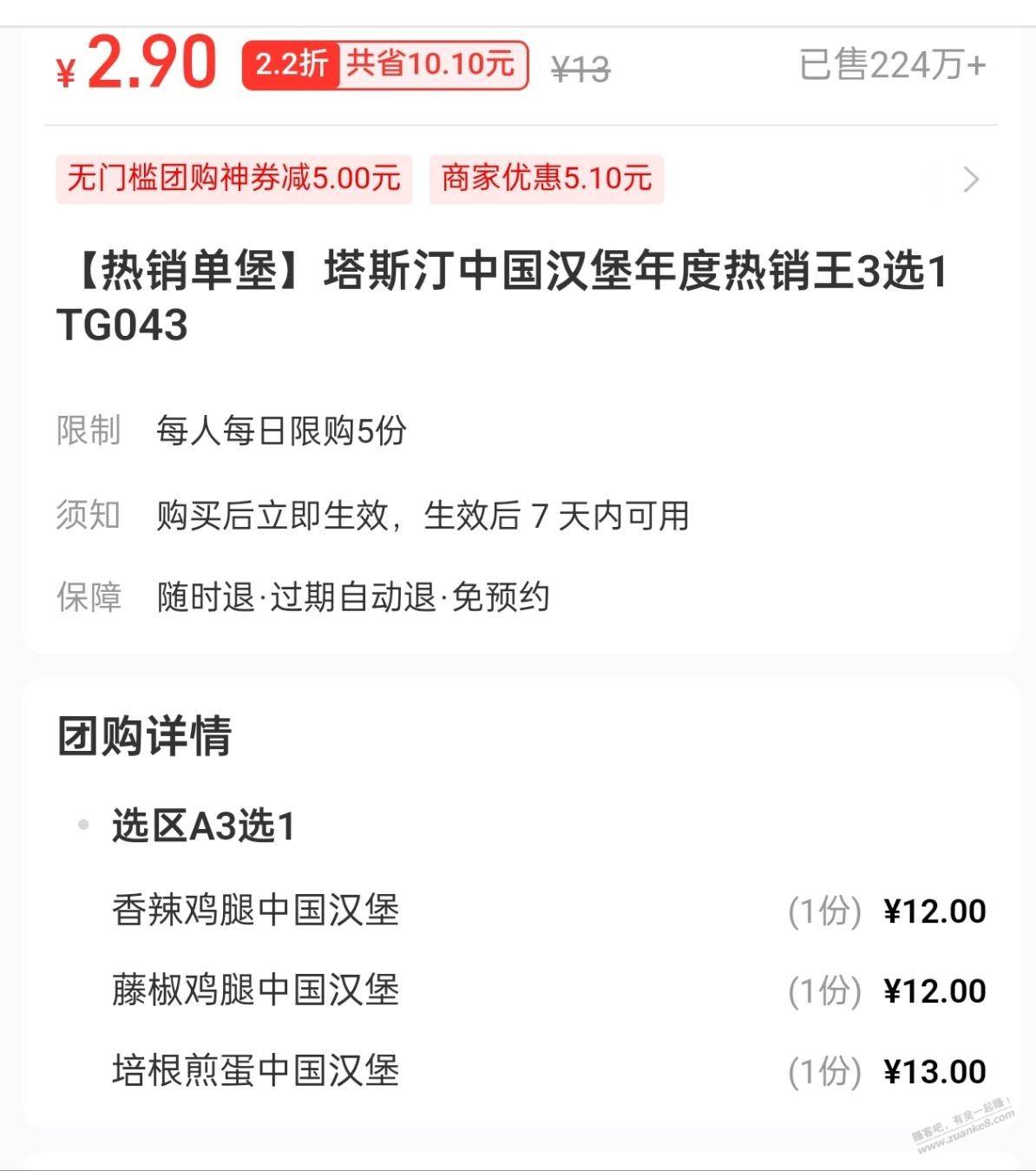 支付宝有5元团购的可以2.9元买塔斯汀的汉堡,培根煎蛋的挺好吃