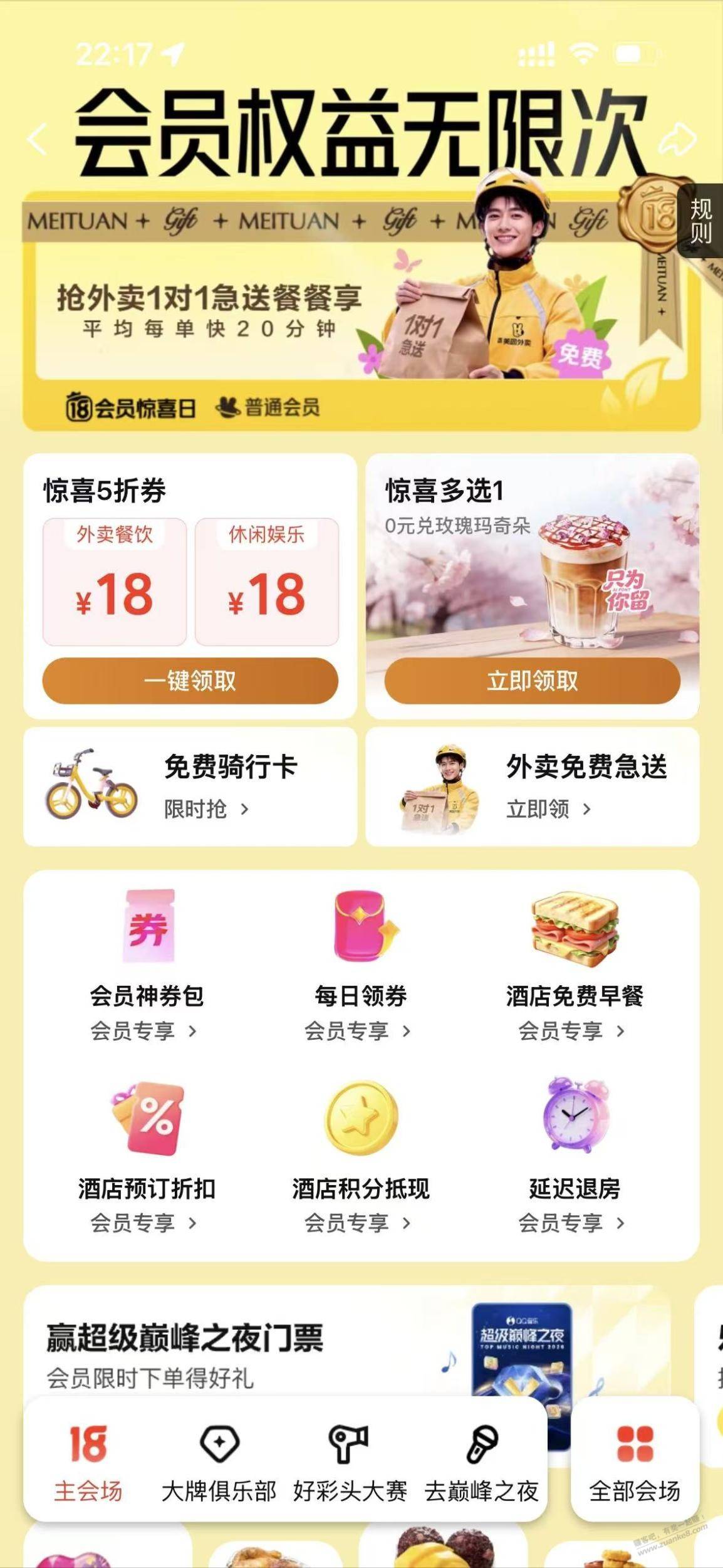 更正下路劲:美团-我的-会员-18会员惊喜日-免费骑行卡