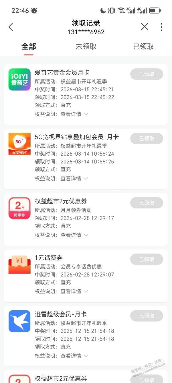 联通权益水刚中爱奇艺会员月卡